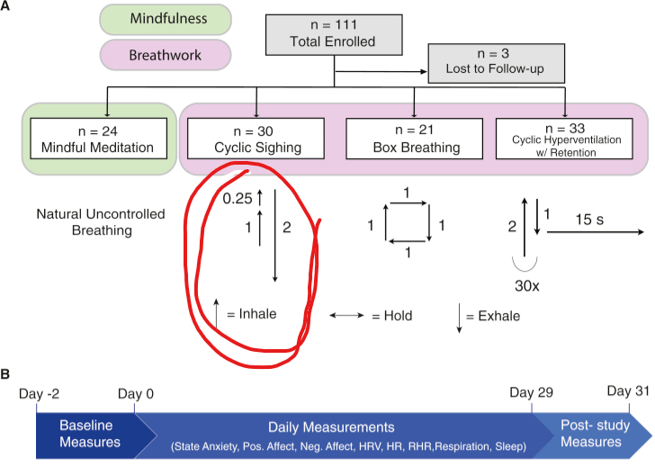 Andrew Huberman (THAT’S WHY HE;’S THE GOAT) led the study, along with Spiegel (idk who that is tbh) which showed that Psychological Sighing is more effective than meditation or other breathing protocols for anxiety relief.