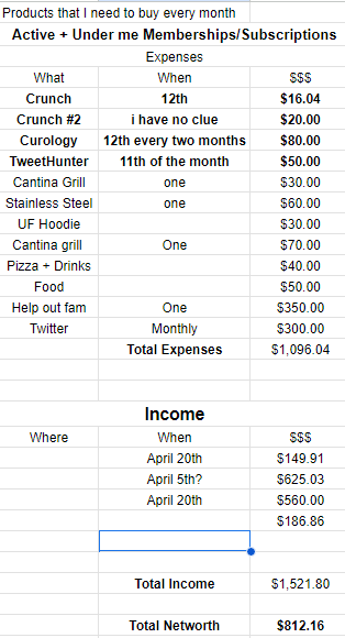 How much money you made that month after expenses
